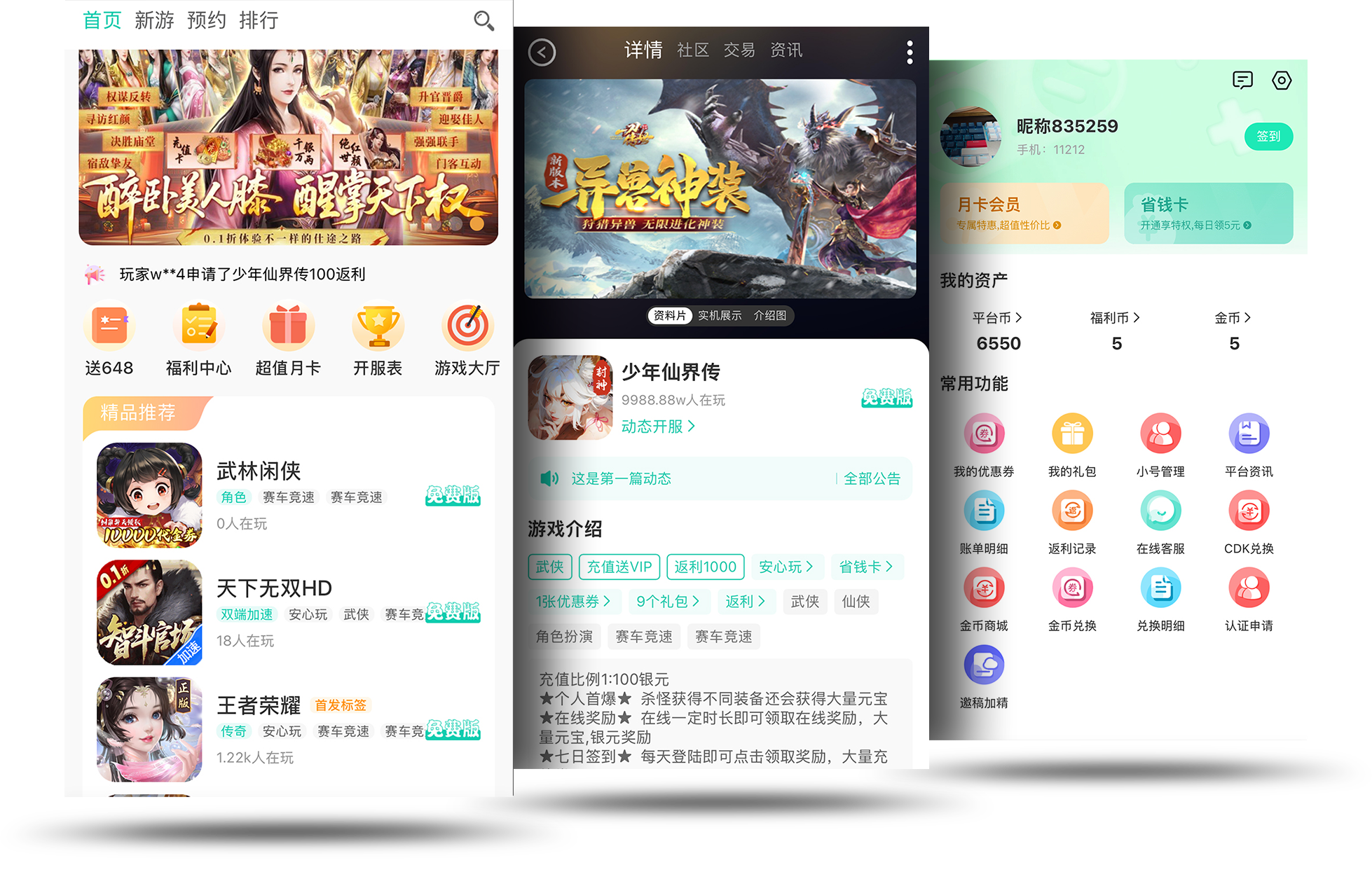 展示不同的类型的游戏游戏下载、游戏礼包领取、游戏攻略查询等移动娱乐游戏服务。